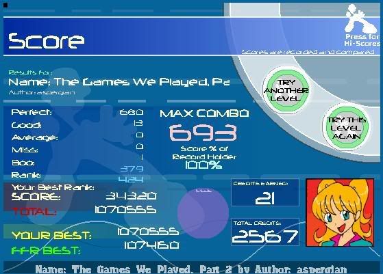 Wow, I never thought this would be possible? I belive God helped me do this. What I said to God was " If you love me then I will get better then my 10 goods on Bicycle Break". I kept missing better then ten a lot of times before that but after I daid it then I got a better score. I feel blessed. And I am in the top 200 on the song! Its your turn Xplayfan!