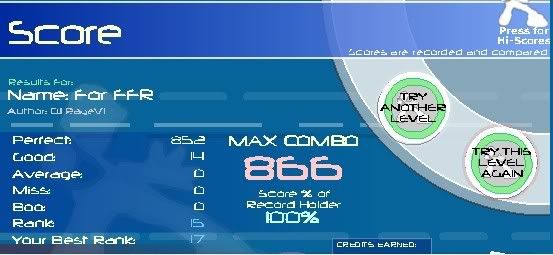 Lol...korny Lol...Quasar 1.5 FC I got new ranks on Molto and Splash Beats and some other songs...not really SS worthy (though the Molto was decent - rank 32). |