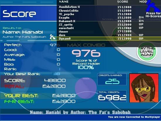 What I do know is read rolls (In For FFR) as two trills, right up and left down, works much easier than doing it in one fluent motion. On another note, I had a EHHS score earlier which I lost the SS of, 560 combo, 54 goods, 1 avg, 3 misses and 7 boos. Much better than the usual 40 goods, 30 avgs, 20 misses and 30+ boos. I just need to learn that, Pants, and the new song and I should have everything pretty much under rank 25. Oh, and carrosuel paradise rofl. |