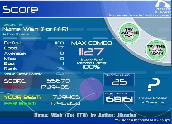 ![]() EDIT: ![]() Damnit, I had lag. I WILL FC THIS EDIT2: **** rofl ![]() Last edited by Rebirth0; 12-18-2006 at 04:29 PM.. |