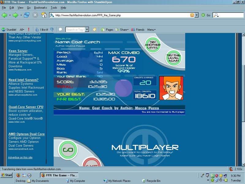 ![]() ![]() ![]() ![]() Closest i could get to FCing this one. I also had a nice CIA Rave score with like 800 combo but i forgot to ss. edit: ![]() got closer to the fc but the end is harder than the rest. Last edited by vvav; 01-9-2007 at 09:29 PM.. |