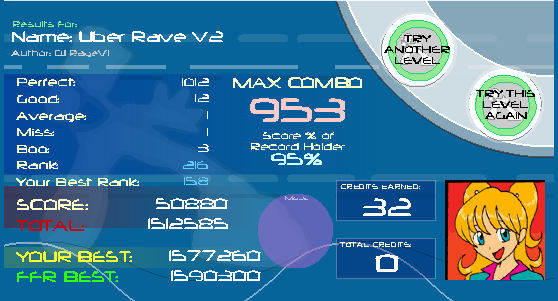 And naturally I suck so it took me forever to AAA it. ![]() So I was whoring it because I have nothing better to do at 1am in the morning... Sightreading - (7-0-0-1) 2nd try - (1) 3rd try - (1) ... 14th try - (0-0-0-1) ... At this point I made a bet with my friend on the phone that if I didn't AAA it in the next try I had to buzz my hair. 18th try - AAA. I guess I should make bets like that more often 0.o o.0 ![]() AAA #59ish (right after moonbeam and hanabi which I got recently) |