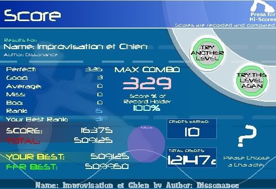 This is pretty good i guess. ![]() Not much better than my other force of light because of the averages, o well. ![]() I don't know the rank of this. But i had like 110 with 3 goods and i was really ticked. ![]() I cleaner aztec. I love this song! ![]() YES! FC'D THIS PIECE OF CRAP! (it's not crap, but i could never fc it.) ![]() |