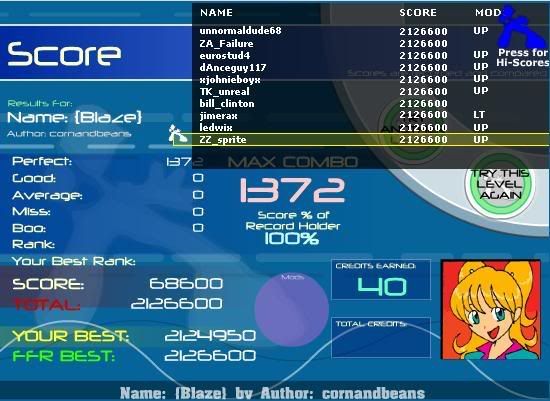 never mind lol well i got that zelda jack down. hardest parts for me were keeping the PA on the first slow jack that goes offbeat in the first part and the two jacks that appear in the second part. ![]() hard as heck! 142nd AAA. edit: #143 YES this definitely felt like a clean run. ![]() Last edited by ledwix; 03-13-2007 at 09:53 PM.. |