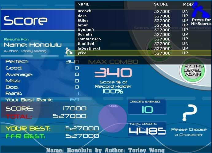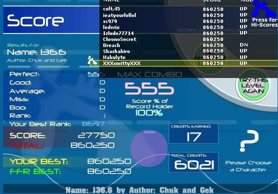 ![]() ![]() Full combo's: 230 AAA's: 75 Latest AAA: Lesson. Best AAA: Firestorm. GameWhore Clan "Team Mom's Been Whoring" hahaha.