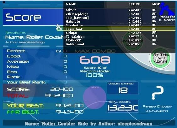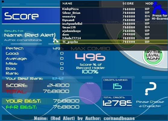 Edit: ahh ****. 1472 combo on the good Vertex BETA and I ****ed up on the easiness. I'll FC tomorrow when I don't have to hit the keys really softly so as not to wake up the mother. Last edited by smartdude1212; 04-2-2007 at 01:04 AM.. |