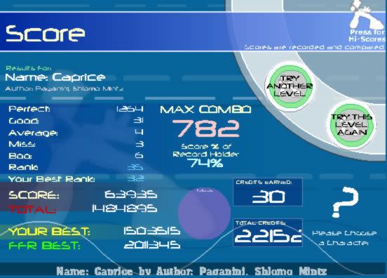 That too, but if you're getting 4 goods on LW, you should consistently get under something like 80 for Caprice. I had a Caprice run with one miss, and even my PA, as horrendous as it is, was better than Summer's. Maybe it's just one of his bad songs, like Silence is for me. Last edited by ieatyourlvllol; 04-3-2007 at 10:13 PM.. |