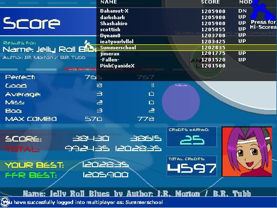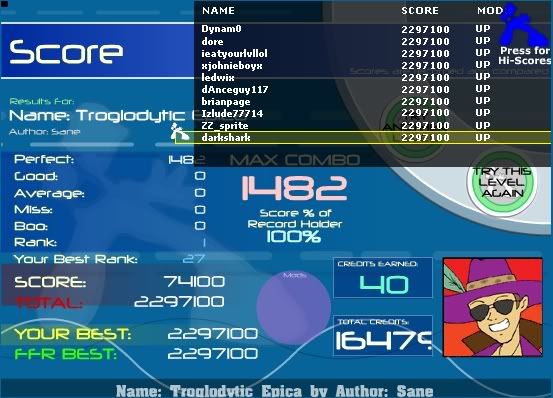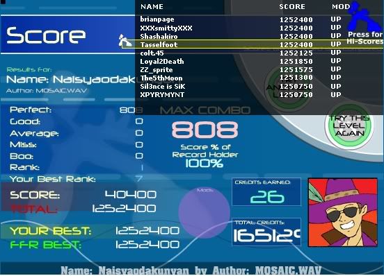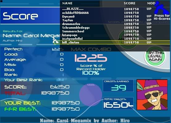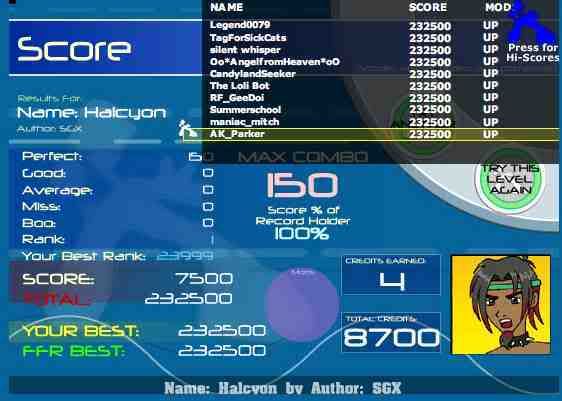 ![]() ![]() Full combo's: 230 AAA's: 75 Latest AAA: Lesson. Best AAA: Firestorm. GameWhore Clan "Team Mom's Been Whoring" hahaha.