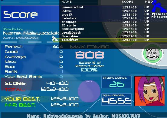Okay I'm back. I think I'm gonna start playing ffr again so expect some scores. P.s. smitty god that Dot death does not match up at all. You should be AAAing it.