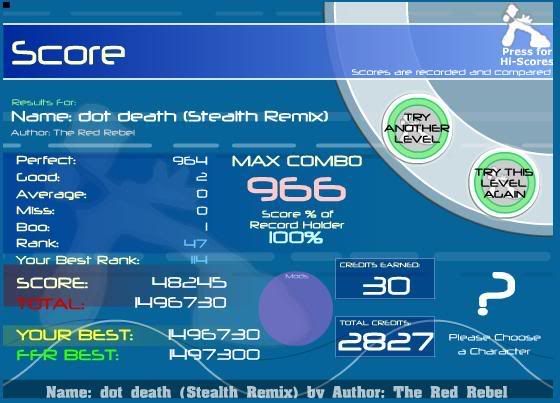 Thanks, Luna. Rofl. I can't do this song worth crap without mashing those stupid jumpstreams. I'll try it again sometime soon, but I doubt I'll get it any better. I have the same problem with Strangeprogram, Hellbeat, and EHHS.