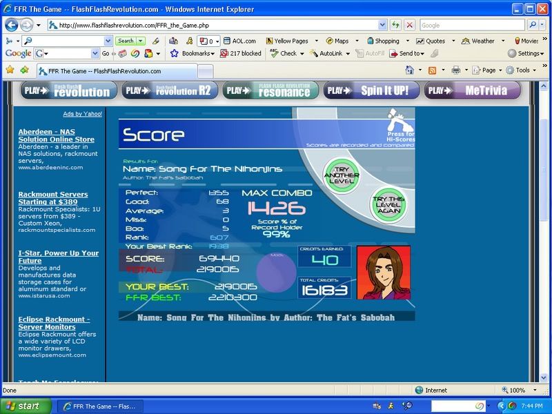Awesome Sepia AAA, Rebirth. WtheckawfulGA on AIM, Shark. Gj on the FC + Tier Insane, though. XD |