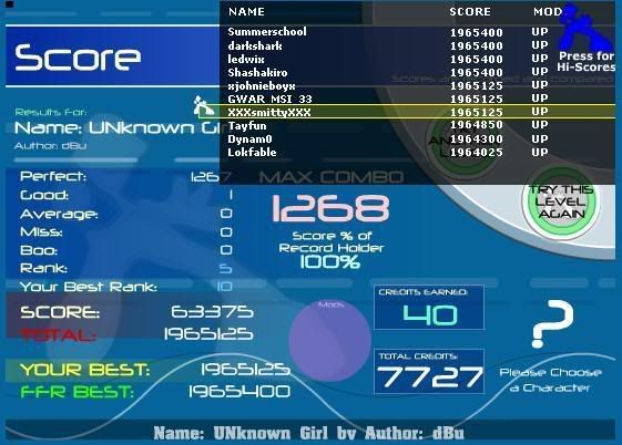 Yeah...ieat is bored. ![]() Extremely...: O Good thing it's one of the only FFR files I enjoy playing. XD |
