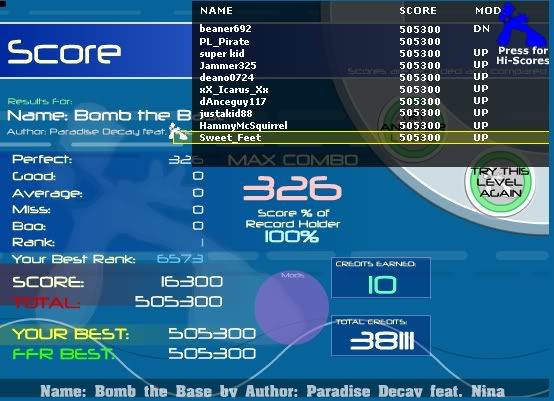 ![]() It's been working wonders. On top of this score, It's gotten me 4 goods on balloon fever (rank 11). It looks like my almost 2 years of FFR and Stepmania is finally showing here. |