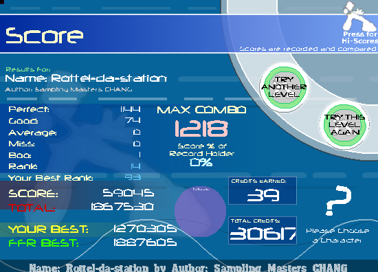 ![]() =D first try in at least a couple of weeks...dusty, but not rusty ^__^ AAA'd all the subscriber songs, too. Last edited by ledwix; 04-28-2007 at 03:25 PM.. |