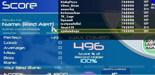 also... woo hoo! from 9-0-0-1. ![]() edit: how the f do i get a score like 487-93-118-40-64 on a song? also, take a wild guess which song it is.