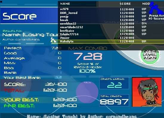 Edit: {Blaze} 2,126,600 42 seconds ago Heck yes, AAA'd first try, and autofail wasn't on either. =) Makes me happy. Edit2: Ahh ****, mashwhored a 1659 combo on Pants, all from the beginning, and then failed RIGHT at the beginning of the very end jumpstream **** and could've easily had ~1900, maybe 2000 because I probably would've mashing more intensely to maintain the combo. Ahh well, rank jump from 166 to 40. XDD Edit3: LMAO mashwhored a Balloon Fever FC. 152-31-0-113 rank 135. WAY better than a 253 rank lmfao. All ranks under 200 now. ![]() Oh yeah also mashed a 1139 combo on Rottel, missed at the easy **** at the end, rank 40. Could've had a FC :/ Last edited by smartdude1212; 05-18-2007 at 10:30 PM.. |