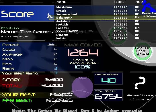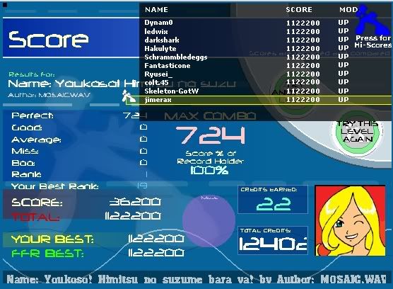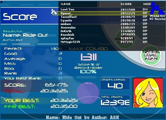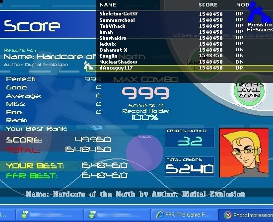 nice scores furry. keep working. ![]() my pa is really bad. BUT FINALLY ****ING FULL COMBOED: ![]() 2x + a screenshrink and i am breaking my scores left and right. Last edited by midare; 05-25-2007 at 04:49 PM.. |