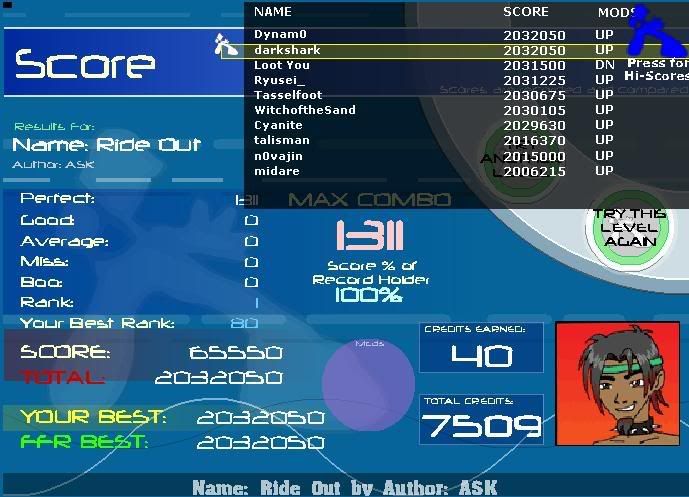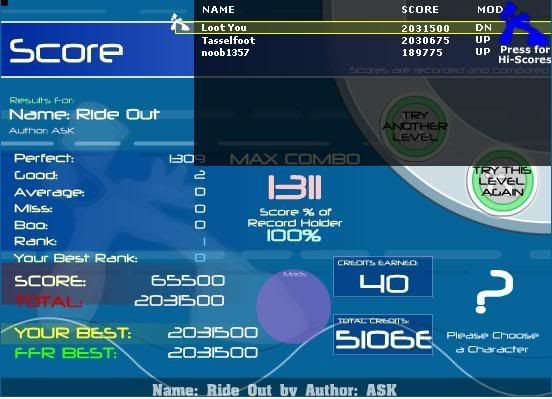 Ride Out has some gay patterns (plus some random jump in between a stream of 16th arrows). I got two goods from the very last 16th stream. Ugh!!