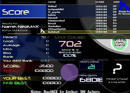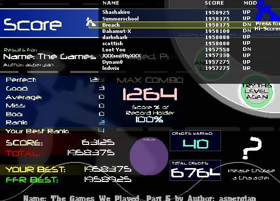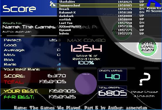 ![]() These aren't that great, but all are new bests for me: ![]() http://www.flashflashrevolution.com/...gameid=5078598 http://www.flashflashrevolution.com/...gameid=5078672 Edit: and http://www.flashflashrevolution.com/...gameid=5082466