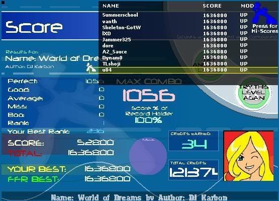 ![]() I have only one thing to say for this: :O Edit: ![]() I remember when I was first able to play this song in secret. I was like WHOA, ANIME SONG. And as I was playing it, I was thinking how pretty it was and was struggling like mad not to fail the song, so I could hear the rest of it. LOOK AT IT NAO ![]() Edit: No...more... try again tomorrow. Will hit 100...soon