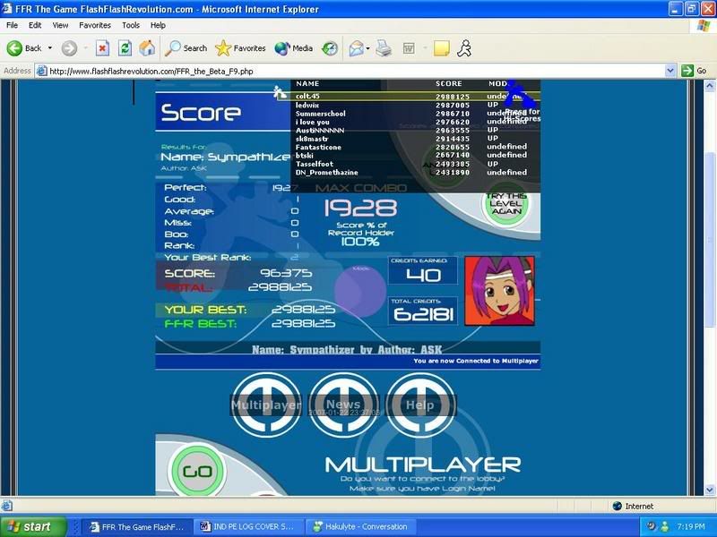 that is because today is my last day of playing ffr, due to moving to missouri for the summer and being stuck with gay ass dial up lol, i tried it out earlier and it took 2 mins to load google, im gonna die, but ill be playing crazy sm all summer =/