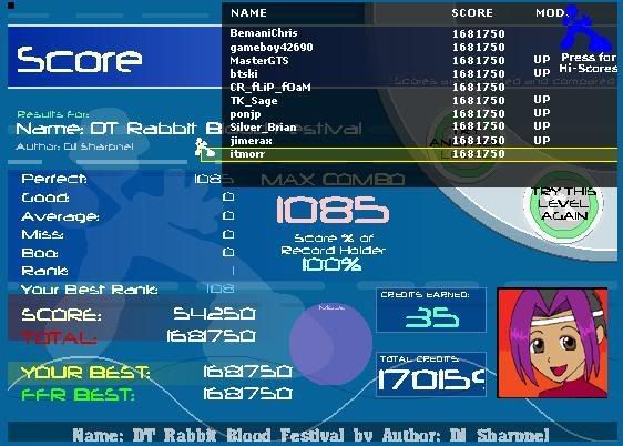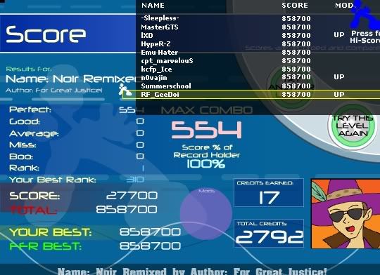 yeah don't spam highscores on a song just because you're good at it. i could spam K8107 and highscore it with 7 accounts just cuz i get like under 4 every time, but that wouldn't be kool. >__<