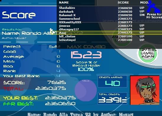 Apparently this is decent from the rank. Could have done better on the weird stuff at the end, oh well, I'm happy about this. My old rank was a non-fc, ****ed up at the weird jump part towards the end ![]() |