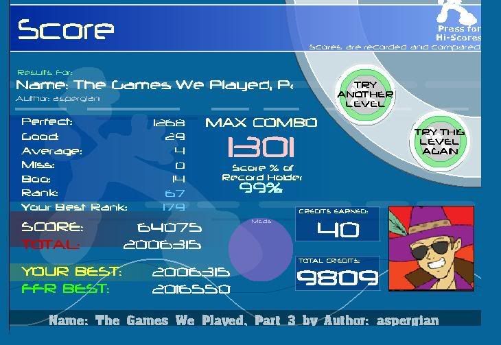 i'm starting to get a hang of this game i guess haha. people said platypus was really annoying to AAA, and i've done it, weee. ![]() oh, i also AAA'd dr. willy theme today too. probably my most offbeat AAA. haha. |