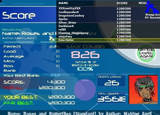 I Lumph'd that one a while ago. If I remember, I had like 1100 combo and crap. And ages ago, this never recorded. ![]() ![]() How did Shash AAA this bitch? |
