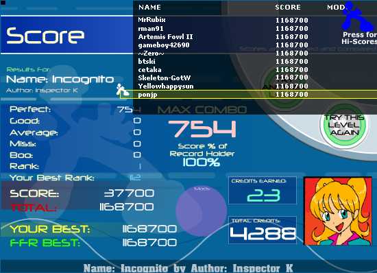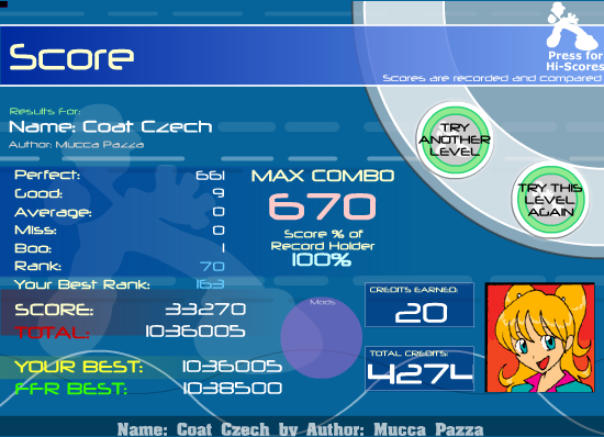 ![]() EDIT: Screw you Jumpstream. Making me somehow not able to FC this song... ![]() EDIT2: Holy **** PA! Improved by more than 40 goods I think... ![]()