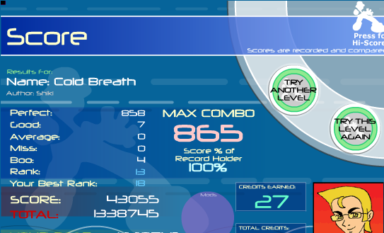 So I got this first try of the day: ![]() Went and played Soul, 2 goods first try, eventually bfed, kinda mad. Then I played Mou, screwed up the end jumpstream, got mad. Played this, AAA'd first try: ![]() Had insane PA (for me) on Balloon, like 18-1-1-4, 17-1-1-5, etc, always avmissing at 580. |