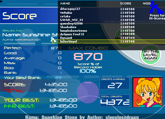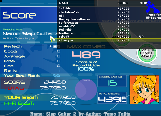 First score on FFR since like 3 weeks ago, lol. Sightread ![]() Back to SM. EDIT: lol just unlocked lolharp5000 on my first lawnwake try. |