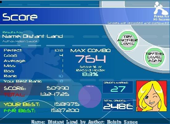 _____________________________________________ AAA - 189 Level rank Average Level - ? Best legit. FC - Runnymorning (SGX Mix) ITG Overall % - 97.60(not updating anymore) ___________________________________ Winner of HammyMcSquirrel's tournament Winner of rshadow8888's tournament Winner of travman301's tournament Winner of Colt.45's tournament |