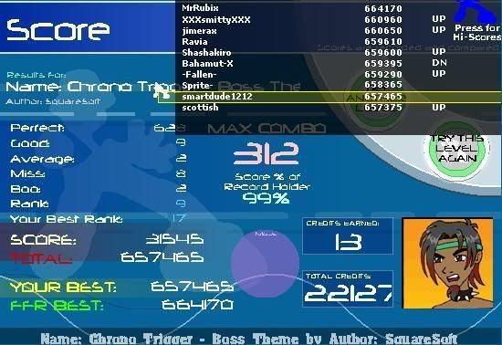 I'll post my next good, unrecorded score here :P as well as in the unrecorded scores thread. EDIT: HURRAH! SCORE! Last edited by remedy1502; 08-5-2007 at 03:41 AM.. |