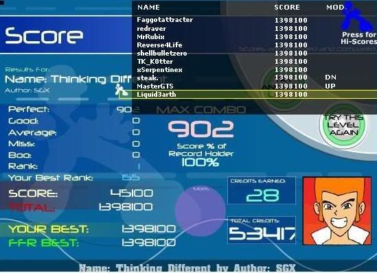 Why do you think Silence, Abtrusity, and hell, even Hellbeat are more AAAd nowadays? BTW, I dunno if ANYONE remembers P4U v1 and Balloon Fever's BG, 'cept the real vets and myself. Anyone remember when the Captain Jack Grandale Remix was on after he died? Synesthetic's 1-framers? Euthanasia's formerly wrong noteskin? When a non-SDG FC, like say, 11-0-0-0, was top 125 on Life Goes On? Good ol' days. BTW, awful for me. I'll be the last funk1n' Tier 3 guy to AAA this, assuming I can get that far someday. ![]() EDIT CBR beat me to this!? Hell, I'm getting horrible. *Apologies and no offense to CBR. I'm out of practice.* ![]() Last edited by Ravia; 08-6-2007 at 09:41 AM.. |