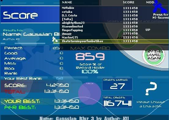 ![]() Sightread =) EDIT: FINALLLLLY ![]() hoooooooooooooooooooray EDIT2: #108 ![]() First try even! 3 challenging AAAs now =) EDIT3: #109 ![]() I don't get what's so easy about that song to other people? Oh well that long trill of death is deadly... EDIT4: #110 ![]() I never got past 300 or so on autofail until i got it =). 5th challenging AAA =)))))))))