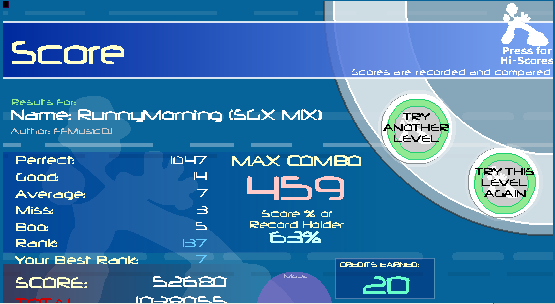 Lol good count and averages.. ![]() Best Pa ever for me on Runny.. still no fc =/ ![]() Random first fun in awhile, wasn't really expecting the weird ending.. ![]() |