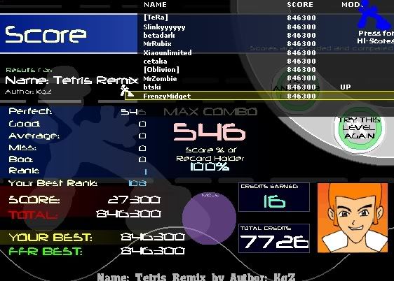 I played FFR for the first time in a few months Got 12-9-12-9 on Rottel lol. I :incredible sucking: at this game now. |