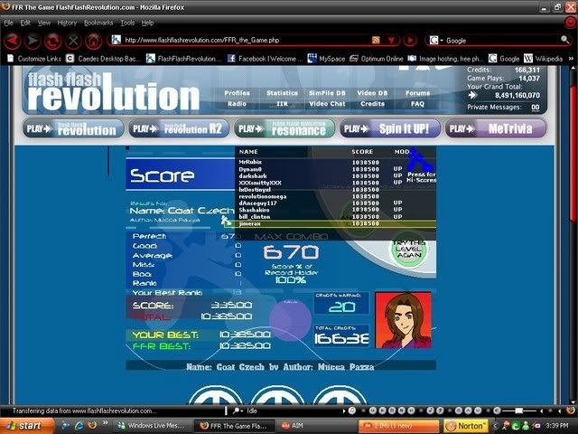 Competition? By all means, I think you're a good person, but competition? No, not one person on this site can come close to ANY of your scores. Apparently, they keep improving. They improve and improve and improve. Unlike the rest of all the players here, there's a point where they can't do any better, no matter the amount of whoring. I just find it amazing that you're able to improve all of your scores within a few days.