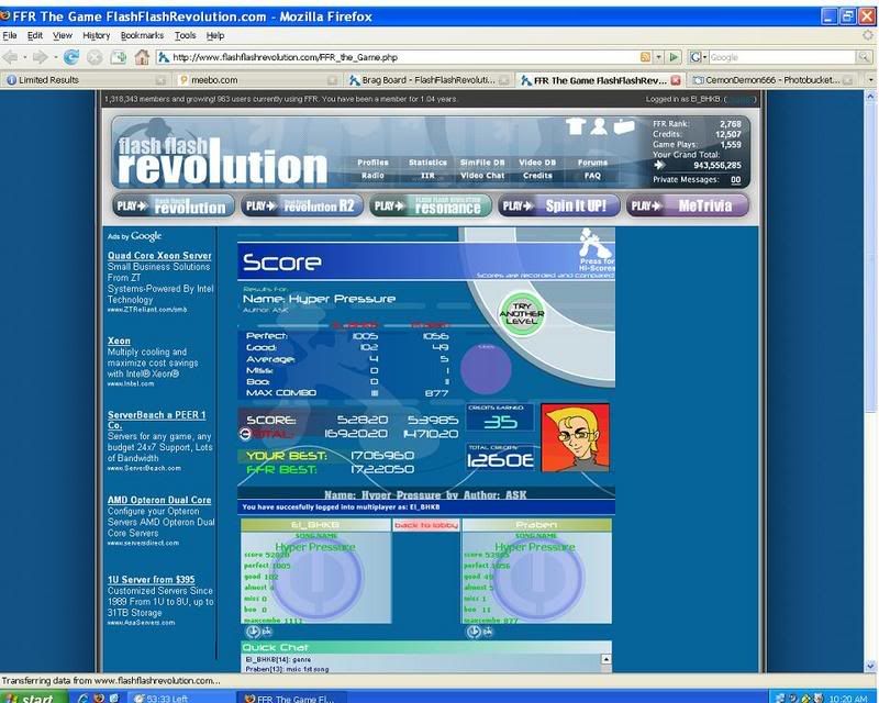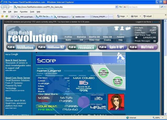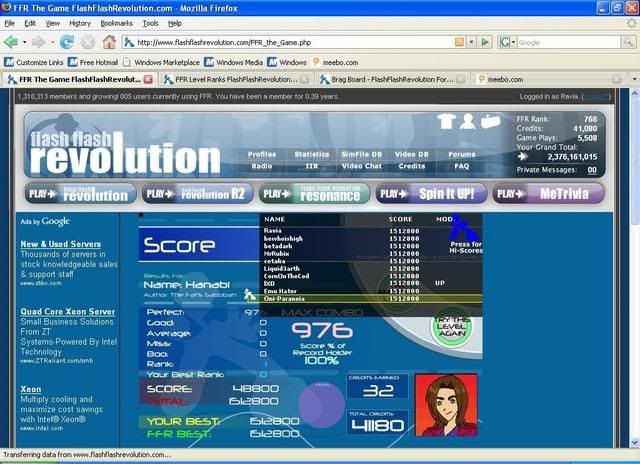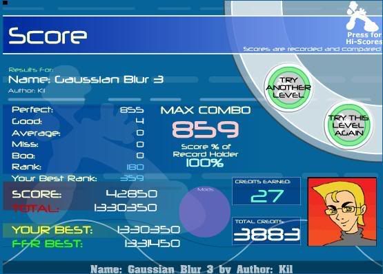 first try, 12 goods second try, 11 goods third try, 1 good then like 2 tried booing out at around 350ish combo then AAA i dont know how i went from 11 to 1... Also, nice sightread on crow song, and the craking sky ![]() also also, i didnt know i was talking to you before in MP, rofl i need to pay attention to names =/ Last edited by [TeRa]; 09-14-2007 at 03:10 PM.. |