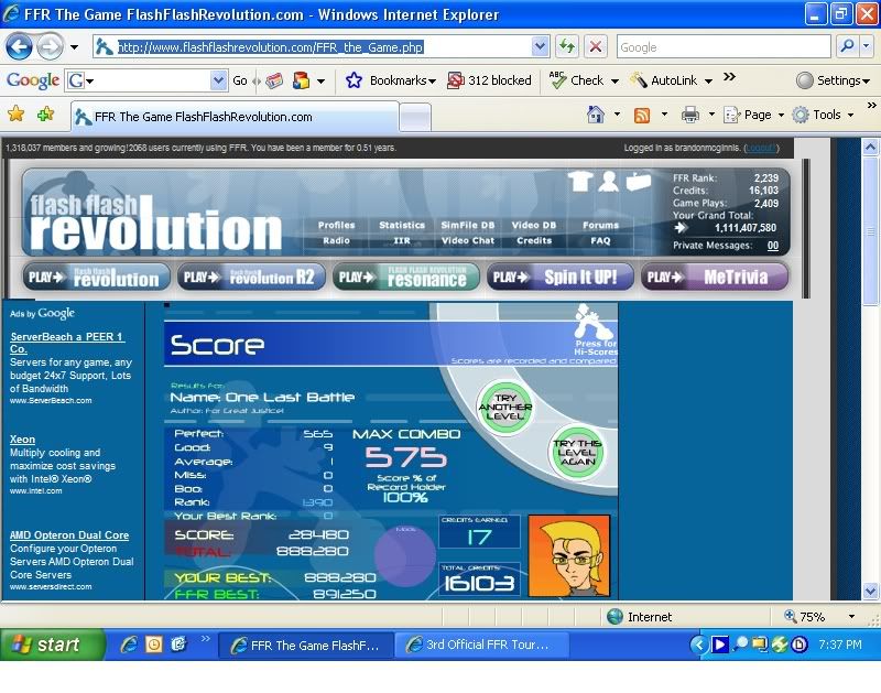 My brother is in intermediate.WOW. I have to be in begginer because I suck but I bet I could win in it I hope.Here is my score right here.I suck actually but that was because I had my volume off.lol