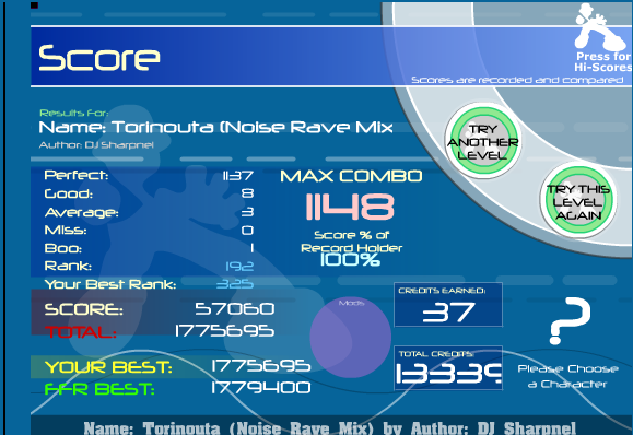 Indeed...Etc. Best Non-AAA Ranks (Before AvMiss Was Fixed): Choprite, Rank 6 [3-0-0-0]; TGWP Part 1, Rank 11 [5-0-0-0]; Otaku Speedvibe Heavy, Rank 13 [1-0-0-0]; Blue Army, Rank 5 [1-0-0-0] |