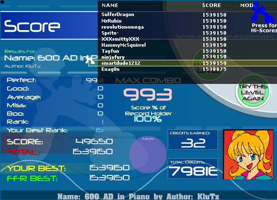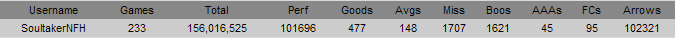 ![]() On the other hand, this only took me 2 tries, and it has less AAAs. wtf? ![]() P.S. Nice one Doug, I can hardly FC that song. |