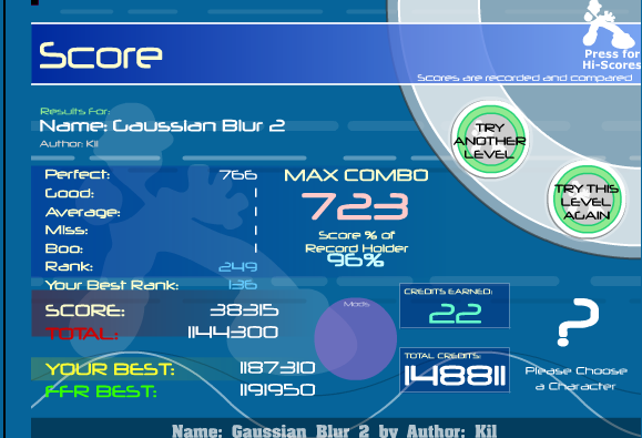 Indeed...Etc. Best Non-AAA Ranks (Before AvMiss Was Fixed): Choprite, Rank 6 [3-0-0-0]; TGWP Part 1, Rank 11 [5-0-0-0]; Otaku Speedvibe Heavy, Rank 13 [1-0-0-0]; Blue Army, Rank 5 [1-0-0-0] |