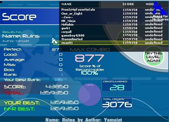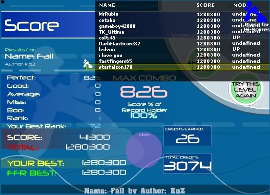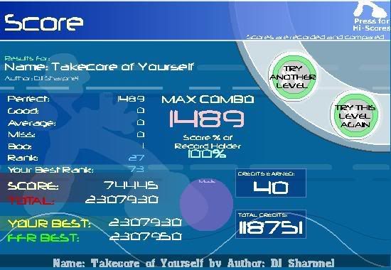 ![]() finally made top 100 lol most of the misses came from avmisses on the second jacks cause i hit them late. oh well, will improve before the end of the week this song gets easier the more i play it except the ending jumpstream lol |