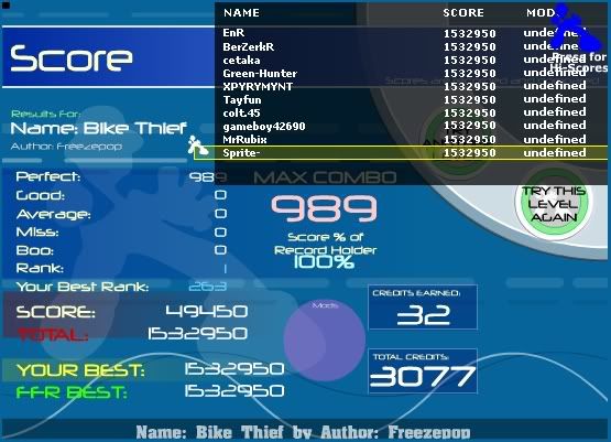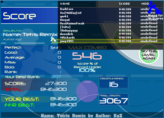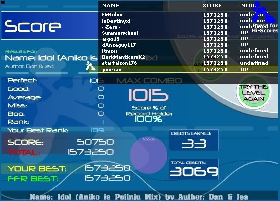 ![]() #250th (public song) ![]() This song gave me a hardtime to AAA it. Old score is rank 39 for 2 goods. I didn't get to see bf ranking. ![]()