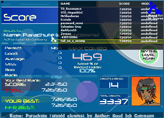 Replay: http://www.flashflashrevolution.com/...eplay/2796405/ Score: ![]() Last edited by jokim; 12-5-2007 at 04:03 PM.. |