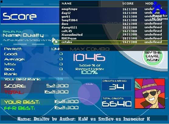 ![]() I thought it would be more obvious if I just posted my personal levelrank so you don't have to go through so much trouble verifying that this AAA is mine. http://www.flashflashrevolution.com/...eplay/2804914/ Here it is anyways...for some reason I'm not on the top list...Hmm... ![]() Last edited by MrShasherax; 12-5-2007 at 04:05 PM.. Reason: xD |