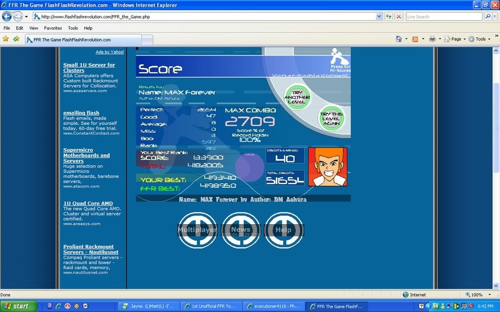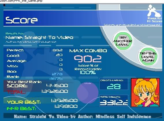 Lost the screenshot, so here's a replay: http://www.flashflashrevolution.com/...eplay/3719580/