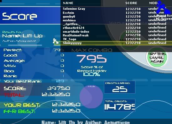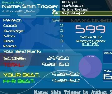 ![]() Finally FC'd this, sick rank (for now) ![]() EDIT: Got 6-1-1-2 on Ascii ![]() Last edited by remedy1502; 12-24-2007 at 12:25 PM.. |